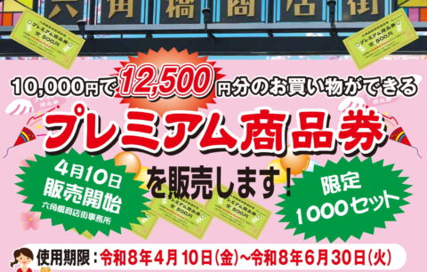 10,000円で12,500円分のお買い物ができる六角橋商店街プレミアム商品券を販売いたします!