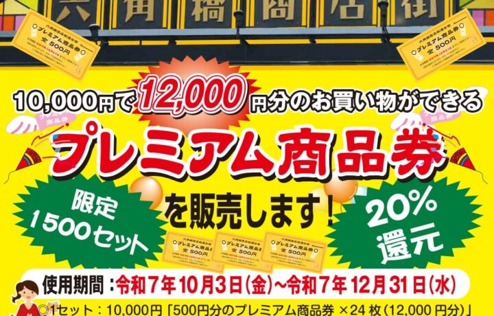 10,000円で12,000円分のお買い物ができる六角橋商店街プレミアム商品券を販売いたします!